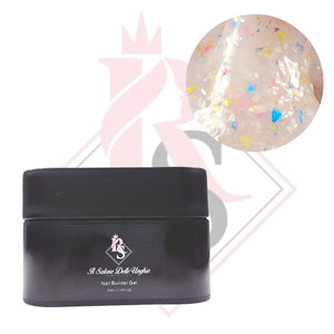 Questo Builder ha base colorata lattiginosa ed è ricco di Flakes super scintillanti.