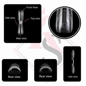 Le Dual Form del ''RS Il salone delle unghie'' sono delle speciali Tip realizzate con materiali di alta qualità, durevoli e riutilizzabili che permettono di ottenere una ricostruzione perfetto in modo ancora più semplice e veloce. A differenza delle classiche Tip, le dual form non vanno incollate direttamente sull'unghia. Si distribuisce il Costruttore nella parte interna della Dual, si applica sull'unghia con una leggera pressione facendo attenzione a non creare bolle d'aria.